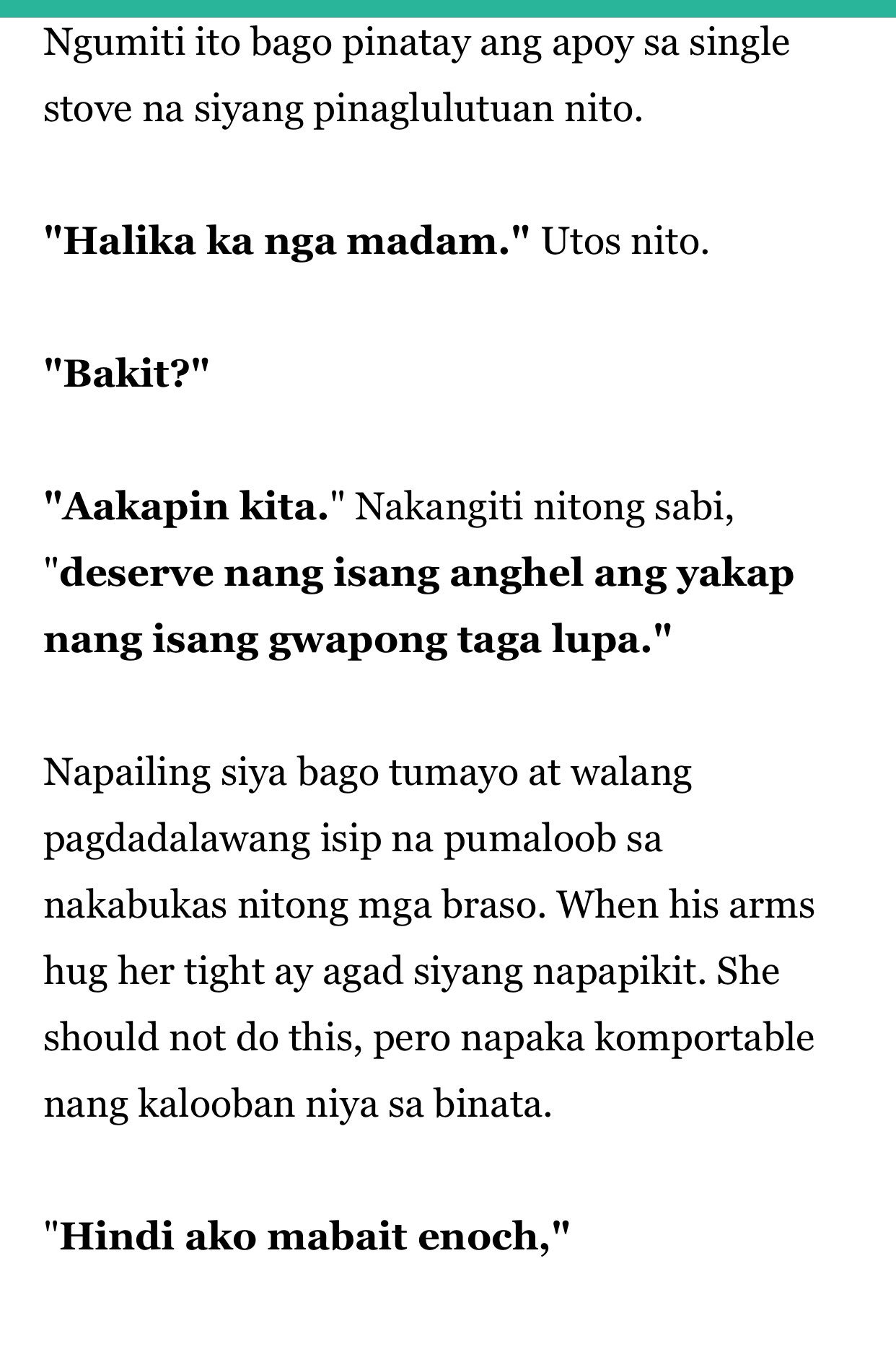 Tahimik siyang lalabas ng silid at bibigyan ako ng biskwit at halik. Match all exact any words. Na po maghibi already come on come on come over come here come here.