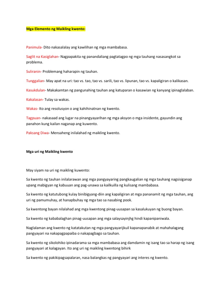Mga Elemento Ng Maikling Kwento Pdf